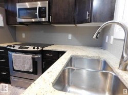 WOW FACTOR! 3 bedrooms, 2 full baths, 2 storey Open Ceiling unit, A/C, Well Maintained & Well Kept, quick possession available, STEPS to LRT station on a beautiful street in BELGRAVIA! Main floor features great room with soaring windows cathedral ceilings, beautiful kitchen with SS appliances, GRANITE counters through out and tons of cabinets. Dinning room, 1 bedroom, full bath, insuite laundry/storage and a large balcony with no blocking view complete the main level! Upstairs is the primary bedroom with ENSUITE featuring DOUBLE SINKS, 2nd PRIVATE balcony and a Custom Make WALK-IN closet. A functional den/bedroom is also offered on the 2nd level! The building features amenities including: fitness room, social room, and car wash. Condo fee includes heat & water utilities. Perfect for investors, students, professionals. Close to University of Alberta, steps to great dining, and 2 blocks from Mckernan/Belgravia LRT station! Incredible VALUE!