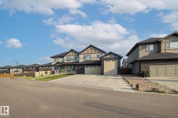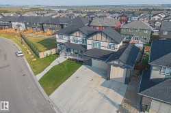 Live your BIG DREAMS in this BIG HOUSE! Room for the whole family & then some. Grand front double doors open to bright & sunny living room, den/bedroom off to the right. Deck #1 just past the living room. On the other side is your formal dining room, full 3pc bathroom, chefs kitchen & deck #2. On the 2nd floor find your private primary bedroom with spa like 5pc ensuite. Soaker tub for 2 & large walk-in closet. Down the hall is laundry room, 3large bedrooms, 4pc bathroom and family TV room completes this level. Hunter Douglas blinds throughout. Oversized TRIPLE tandem garage is any motor enthusiast dream; commercial grade heaters, 13' ceilings room for car lift. TWO 12' garage doors. Park the RV, boat, bikes, all the toys. 9' ceilings in basement ready for future development with separate entrance. Almost .30 of an acre lot. You will never find this again in the city. Walking trails through the valley right out front your door. Easy access to Anthony Henday, HWY 16, & shopping amenities. Look no further!