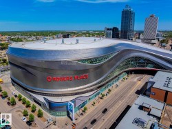 THE ULTIMA - in the heart of the YEG ICE District. Can you imagine walking to work every day & living the ultimate downtown lifestyle! Over 444sqft of finished living space – 1 BEDROOM – LIVING ROOM, KITCHEN, DINING AREA, 3 piece bathroom, in-suite LAUNDRY, storage & UNDERGROUND PARKING stall all included. Step inside this extremely well-designed condo & you will love the fully equipped kitchen with ample storage & prep space - open to kitchen is the dining area. Sit & relax in the living room enjoying the downtown views. Through the patio doors – the spacious outdoor living space has views of all city life. Back inside the master bedroom is good size with additional storage – laundry & 3 piece bath complete this condo. Walk to every amenity – restaurants, cafes, movies, concerts & sporting events! **Pet policy: allows 1 cat or 1 dog (when full grown weighs less than 14 kg -30 lbs or isn't more than 15 inches at the shoulder)**