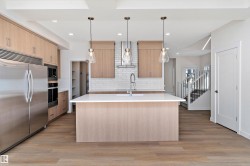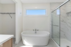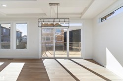 Discover your dream home in Crystallina! This brand new 2,164 sq ft two-storey Tofino model home built by City Homes, is loaded with over $40,000 in upgrades, situated in a pie shape lot, and ready for immediate possession! The main floor impresses with its open design, upgraded kitchen and appliance package, dining area that steps out to the included rear deck, and a spacious living room highlighted by a striking 60” electric fireplace. Upstairs offers a bright central bonus room with oversized slider window, a private primary suite with walk-in closet and ensuite with freestanding tub, plus two spacious additional bedrooms. Extras you’ll love: elegant spindle railing, enlarged garage for added parking space, separate side entrance with suite potential, and basement rough-ins for laundry and sink. Situated in a family-friendly community close to schools, shopping, parks, and the Henday — this home combines elevated living with sophisticated style. Don’t miss this move-in ready opportunity!