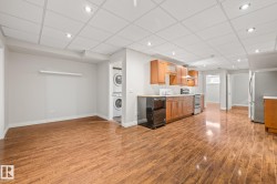 Spacious, well maintained, half duplex with 2 bedroom basement with separate kitchen, laundry and side entrance in the heart of Queen Alexandra! Walking distance to schools, parks, Whyte Ave and UofA! 2100 square feet above ground with 9’ ceilings and Hardwood on main floor, plus main floor office/den. Other perks include a large open concept kitchen/dining and living room with a gas fireplace and oversized east facing windows. Upstairs you'll find a large primary bedroom with a 4 piece ensuite, and a walk-in closet, plus 2 additional bedrooms, 4 piece bath with soaker tub and laundry room! This well maintained home has new carpets and paint throughout, central A/C and a high efficiency furnace, complimented by quality Hardy Board siding! The East facing backyard offers a 200 square foot deck, mature trees, a well built fence and plenty of private yard space with a paved walkway to the Double car garage. This is a turn key home, close to amenities in a fantastic neighborhood!