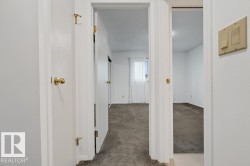 This well-kept family home in the community of Lymburn offers space, flexibility, and a rare reverse pie-shaped lot backing directly onto green space for added privacy. A bright vaulted ceiling living room welcomes you, opening smoothly into the functional kitchen with clear views of the greenery behind. The upper level features two bedrooms and a full bathroom. On the first lower level, you’ll find a sunken living area with a wood-burning fireplace and a recently updated bathroom with a glass shower. The basement adds even more versatility with an additional bedroom or flex room, plus laundry and storage. Outside, enjoy a large patio overlooking your 543 sq. m. lot, ideal for low-maintenance outdoor living. A double garage completes the home. Move-in ready and situated close to the Henday, Whitemud Drive, and West Edmonton Mall, this 4-level split offers comfort, privacy, and convenience in a great west-end location.
