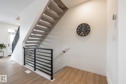 Detached and brand new without any of the headaches of building, this 2-month-old 3-storey is effortlessly stylish with upgraded metal railings, floor-to-ceiling windows, $8,500 custom blinds, luxury vinyl plank on all 3 levels (carpet only on stairs), central A/C, gold hardware, quartz counters, premium appliance package and upgraded shelving throughout. A raised floor plan places your main living space on the second level, offering brighter spaces and better views. East–west exposure ensures that natural light flows all day. 3-stage heating and cooling for temperature control on each level. Primary suite features an upgraded ensuite with gold fixtures, deep soaker tub & elevated finishes. Main floor features a front-door office, ideal for anyone seeking to separate their side hustle from home life. Double attached garage, large upper front patio, fenced front yard & every upgrade already done (under full warranty), this barely lived-in home stands out from the crowd and is completely move-in ready!