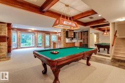 Welcome to this gorgeous RAVINE-BACKING estate, by Darren Homes, where timeless design meets natural beauty. This 5-bedroom walkout home blends grand living with warm sophistication. Expansive windows provide natural light and frame peaceful ravine views, while soaring ceilings, custom woodwork, and crown molding add elegance throughout. The spa-like primary suite features a luxurious ensuite with jacuzzi tub. The gourmet kitchen shines with top-tier appliances, premium Italian oven, and custom cabinetry. The finished walkout basement includes a second kitchen, spacious living areas, private guest quarters, and a billiard table—perfect for entertaining. Comfort is ensured with in-floor heating in the basement and in the oversized garage. Dual furnaces, 2 A/C units, and new hot water tanks. Outdoors, enjoy a large patio with fireplace, a professionally landscaped yard with full irrigation, dual gas BBQ lines, and direct access to nature. A rare opportunity for refined living in a premier location!