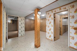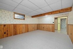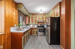 Welcome to this mid century home in the desirable community of Crestwood. This property has nearly 2500 sf of finished living space with charming classic finishes throughout including real wood doors, original hardwood in the living and diningroom, vintage light fixtures, original wall panels and stone surround fireplace. The fireplace has been upgraded to gas to take in the original ambience without the hassle & cost of wood. Other upgrades include vinyl floor in kitchen, new carpets in bedrooms, shingles. 3 bedrooms up and 2 bedrooms down this home is perfect or a large family or would make a great future basement suite with its separate side entry. Located on a lot that is steps to Candy Cane lane, has many trees and is fenced with an oversized detached garage with built in hobby room! Don't miss this unique opportunity! *Virtually staged*