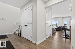 Welcome to this like-new half duplex offering beautiful, tasteful finishing and a peaceful setting backing onto nature with direct access to scenic walking trails. Designed for both comfort and function. The main floor offers an open, inviting layout with a fabulous kitchen and central island, great for entertaining. Natural light embraces the livingroom with the wall of windows. This home features 3 spacious bedrooms, including a primary retreat with a large ensuite showcasing double sinks, an oversized shower, and a walk-in closet. Enjoy the convenience of an upper-level laundry room located near the bedrooms. Central air for those hot summer nights, all window coverings included, fully fenced yard, privacy screen on the deck with a gazebo . Completing the package is a double attached garage that is fully insulated and drywalled. A rare opportunity to enjoy modern living backing nature—this home is move-in ready and shows like new.