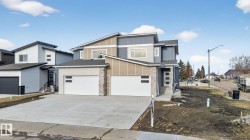 Welcome home to this beautiful new construction half duplex in Gibbons,the ideal place for first-time buyers or young families to put down roots.From the moment you walk in, you’ll love the bright, open-concept layout designed for real life.From family dinners in the modern kitchen to cozy movie nights by the gas fireplace.The kitchen features sleek finishes and plenty of space to cook and connect. Upstairs, you’ll find three generous bedrooms, including a dreamy primary suite with a spacious ensuite bathroom and the convenience of laundry right down the hall.No more trips up and down stairs! But the real showstopper? Step right off your back deck and into a brand new community part.It’s like having a playground in your backyard without the upkeep.The yard itself is a blank canvas, ready for you to create your perfect outdoor space for summer BBQs and playtime.With a double attached garage and a basement ready for your personal touch (or even a future suite!),this home is packed with value and opportunity