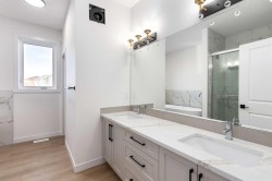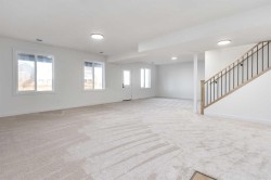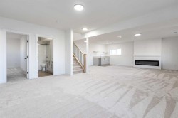 This is a rare family sized bungalow with four big bedrooms and a triple attached garage. It is a fully finished 1507 sq ft walkout home in a great area overlooking a beautiful waterway and park, and it has premium finishes throughout. The main floor is a modern open plan with a large entry hall, 9’ ceilings, high quality flooring, and a covered 24’ x 10’ deck. The kitchen includes cabinets to the ceiling, quartz counters, under-mount sink, countertop lighting, select tiles, a large walk-in pantry and all appliances are included. Also on the main floor is the spacious and open living / dining room, the primary bedroom, a laundry room, and a second bedroom or office. Deluxe appointments in the master suite include built in cabinetry in the walk-in closet, an big vanity with double sinks, and a soaker tub plus a 6' shower. The lower level has two more spacious bedrooms and a very big family room with a built-in wet bar. All rooms in this home have lots of natural light, and there are many extras including a 24’ x 10’ patio, two fireplaces, full concrete steps and a Hardieboard exterior. Click the multimedia link for a virtual interactive 3D tour, plus floor plans and professional pictures.