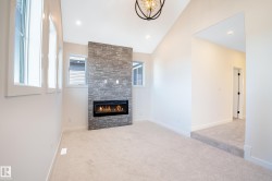 Double Garage Detached Home located in a peaceful community while being conveniently close to all amenities. Main floor with Open to above Living area with fireplace & stunning feature wall. Main floor bedroom with closet and full bath. BEAUTIFUL extended kitchen with Centre island. Spice Kitchen with lot of cabinets. Dining nook with access to backyard . Oak staircase leads to spacious bonus room. Huge Primary bedroom with 5pc fully custom ensuite & W/I closet. Two more bedrooms with common bathroom. Laundry on 2nd floor with sink. Unfinished basement waiting for your personal finishes.