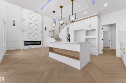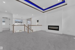 Welcome to this beautifully upgraded 3-bedroom + den home, thoughtfully designed for functional living. Boasting an extended main kitchen and a fully equipped spice kitchen, this home is perfect for families who love to cook and entertain. The main floor features a full bathroom and a versatile den—ideal for a home office or guest room. The spacious living area showcases a feature tiled fireplace, complemented by upgraded lighting that creates a warm and inviting ambiance. Upstairs, you'll find a cozy bonus room with a second fireplace and stylish rope lighting, perfect for relaxing evenings. The primary suite is a true retreat, complete with a 5-piece ensuite featuring a free-standing soaker tub, dual vanity with under cabinet lighting, and a huge walk-in closet. Two additional spacious bedrooms and a full laundry room round out the upper level. Additional highlights include: Built-in desk and custom shelving, Finished deck with durable metal railing and Many high-end upgrades throughout the home!