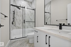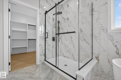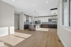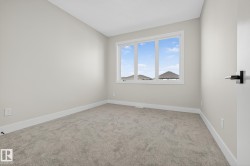 Welcome to luxury living in Edgewater Circle, Southfork Leduc! This brand-new 2,625 sq. ft. home with an oversized double attached garage is built to the highest standards and comes with new home warranty. The grand open-to-below foyer opens to an elegant main floor featuring a chef’s kitchen with built-in appliances, extended cabinets and counters into the dining area, and a modern tile fireplace in the living room. A main floor bedroom and full bathroom make this home ideal for multigenerational living. Upstairs offers an expansive family room and generous bedrooms. Added features include AC, side entrance for future basement development, deck, and landscaping allowance. Perfectly positioned backing Saito Park and green space, across from the lake and trails, and walking distance to the school—a perfect blend of elegance, comfort, and function. Available for immediate possession; don't miss out on this great home, and move into your new home by the holidays!