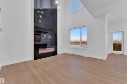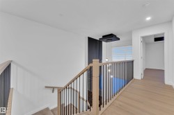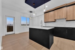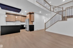 Detached front double car garage home features total of 4 bedrooms, 3 full bathrooms & a bonus room. Comes with appliances & blinds. MAIN FLOOR BEDROOM with FULL WASHROOM featuring a stand-up shower. Main floor luxury vinyl plank flooring. SPICE KITCHEN for added convenience. Main kitchen with centre island, premium cabinetry, quartz countertops, and MDF shelving throughout.The stunning OPEN-TO-ABOVE living area with electric fireplace, and accent wall. Spindle railing leads to Upper level spacious bonus room, primary br with feature wall, indent ceiling, W/I closet & ensuite. 2 more bedrooms with common bathroom & laundry room completed upper level. SIDE BASEMENT ENTRANCE. Additionally, the property offers 9-FT CEILINGS ON Main & basement LEVELS. Located beside a school, minutes from COSTCO, the EDMONTON OUTLET MALL, and the AIRPORT, you get quick access to all amenities.