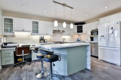Step into refined living with this beautifully updated and truly move-in ready townhouse, where modern design and quality craftsmanship come together seamlessly. Over the past few years, nearly every major component has been upgraded — including an asphalt-bonded roof on the home, 50-year shingles on the garage, new PVC windows, modern doors, décor light switches, flooring, fresh paint, and stunning bathroom renovations. The kitchen is a showpiece, featuring upgraded cabinetry, countertops, fixtures, and backsplash, all thoughtfully designed for both function and style. It opens to a formal dining area and flows effortlessly to a spacious 12' x 20' Duradeck-covered back deck, complete with two enclosed storage spaces beneath. From here, enjoy a peaceful view of your private yard and a peekaboo view of the park beyond. The upper level offers an open, light-filled floorplan with a contemporary half bath, while the lower level provides two inviting bedrooms and a fully renovated full bath showcasing sleek, modern finishes. With approximately 1,250 sq. ft. of total living space, this home feels bright, open, and elegant throughout, in spite of its relatively small footprint. Out back, the super-single heated and finished garage with paved lane access offers excellent storage, workshop space, and parking for one. Best of all, there are no condo fees or bylaws—just the freedom of homeownership with your own yard to enjoy. Located steps from a serene park that enhances privacy and adds to the sense of space, this exceptional townhouse is the perfect blend of style, comfort, and convenience. Quick possession is available—come experience this gem for yourself today.