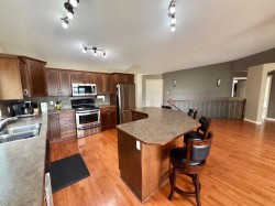 Custom built, one owner bungalow with walk out basement backing onto West Highlands Park with a great view of the park's water fountain and bridge. Family home with close proximity to a small children's playground, schools and covered kiosk area ideal for picnics. This 1403 square home features hardwood floors, both a gas and electric fireplace, main floor laundry, and lots of south facing windows to enjoy the view of the park. The main floor has an open floor concept with two bedrooms. The basement is fully finished with a large family room and two bedrooms, one with a walk in closet. Both upper and lower decks are covered with natural gas connections. There is plenty of parking with and oversized two car garage. Outdoors, enjoy a unique low-maintenance oriental design front and backyard. This home shows true pride of ownership!