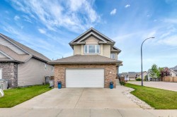 Welcome to College Park living! This beautifully upgraded 1,850 sq. ft. two-storey home sits on a quiet corner lot and offers exceptional comfort, space, and style. The open-concept main floor features rich hardwood and tile flooring, wide baseboards, Quartz countertops, undermount sink and newer LG stainless steel appliances. A 2-piece bath and main floor laundry with built-in cabinetry add everyday convenience. The oversized double attached heated garage (25' x 26') includes hot and cold water taps and a floor sump—perfect for year-round functionality. Upstairs, enjoy a spacious bonus room with a cozy gas fireplace, a 4-piece bath, and three bedrooms, including the generous sized primary suite with luxurious ensuite featuring a jetted jacuzzi tub and separate shower. The fully finished basement provides two additional bedrooms, another full bath, a large family room, and ample storage—ideal for guests, teens, or a home office. Additional upgrades include a hardwood staircase with iron railings, triple-glazed windows, central A/C, and upgraded cabinets/quartz counter tops throughout all spaces. This home blends quality craftsmanship with modern features—book your showing today!