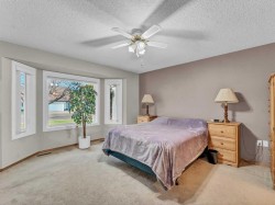 Spacious and inviting, this 1,324 sq. ft. half-duplex is located in the highly desirable, executive 55+ bareland condominium community of Park Meadows Estates. This well-kept bungalow offers a walk-out basement and backs onto the gorgeous park, providing beautiful views and a serene setting. A double attached heated garage, updated windows throughout, a newer hot water tank, a brand-new high-efficiency furnace, comfort-height toilets, and new taps allow you to simply move in and enjoy. Inside, a large front entry welcomes you into the home. To your left sits the generous primary bedroom complete with a 3-piece ensuite and walk-in shower. The kitchen features granite countertops, a newer stainless steel appliance package, and a charming nook perfect for an eat-in area, coffee bar, or bistro table. Adjacent to the kitchen is the spacious formal dining room and living room, with access to a partially enclosed, partially open deck ideal for relaxing or BBQing. Down the hall you’ll find a 4-piece main bathroom, convenient main-floor laundry, and an additional well-sized bedroom. The bright walk-out basement offers abundant natural light, a cozy gas fireplace, a wet bar, and access to a lovely covered patio area. A versatile room with a closet—perfect for a den, office, or craft room—a 3-piece bathroom, and ample storage complete the lower level. This beautifully maintained home offers comfort, convenience, and an unbeatable location.