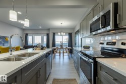 Edgewood is a family-oriented and charming neighbourhood that offers a blend of small-town warmth and modern convenience. With quiet streets, walking trails, nearby parks, sports facilities, and proximity to schools and downtown, it's designed to foster community connections and everyday ease. With over 1470 square feet of open concept living space, the Soho-D from Akash Homes is built with your growing family in mind. This duplex home features 3 bedrooms, 2.5 bathrooms and chrome faucets throughout. Enjoy extra living space on the main floor with the laundry room and full sink on the second floor. The 9-foot ceilings on main floor and quartz countertops throughout blends style and functionality for your family to build endless memories. PLUS a SEPARATE ENTRANCE AND single oversized attached garage! PICTURES ARE OF SHOWHOME; ACTUAL HOME, PLANS, FIXTURES, AND FINISHES MAY VARY & SUBJECT TO AVAILABILITY/CHANGES!
