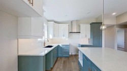 A new home 1469 Square feet, modern bungalow with a wonderful 2.4 meters to the property line from the home. Thoughtfully designed and built with high-end construction and finishes throughout. This home blends timeless style with everyday comfort. Inside, rich luxury vinyl plank flooring flows through a bright, open-concept layout. Sunlight pours through large windows, filling the living area with a soft , inviting glow, perfect for quiet mornings and lively evenings with family and friends.The heart of the home, the kitchen, is a beautiful as it is a functional, featuring gleaming quartz countertops, a sleek under-mount sink, elegant tilework, under-cabinet lighting, and abundant storage for all you culinary treasures. The primary suite is your own personal retreat, with a spacious dual sink vanity in the ensuite, a fully tiled walk-in glass shower, a closable bathroom, a custom walk-in closet with built-in cabinetry. Two additional bedrooms with closets and wonderful shelving custom-made for family, guests, or a home office. A cozy front porch invites you to sip coffee and watch the mountains as the day unfold, while massive 30-foot back deck is perfect for sunny mornings and afternoons. A wonderful area to enjoy lots of friends for get together times. The mudroom, complete with custom made sitting area and spaces for your jackets and shoes storage and access to walk down to the detached garage. The mudroom has a complete laundry closet. Downstairs, the basement is bright with low level large windows and natural light. The potential development of the basement has 2 lovely bedrooms, full bath tub-shower bathroom. It is easy to create a luxurious family room area with wonderful lighting. The exterior features are charming blue-gray Smart siding with crisp white trim for a welcoming, classic finish. This home is built to last, crafted with exceptional workmanship and top-quality finishes from the ground up ready for you to move in, settle down and start making memories.