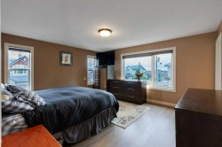 This family home is roomy, offers a relaxing vibe, and is ready for you to move right in! You will enjoy stretching out in all the spacious rooms of this FULLY DEVELOPED HOME. Upon entering you will be welcomed by a spacious entrance that leads into the main living space with 9 FOOT ceilings and HARDWOOD FLOORS. MAPLE CABINETRY, an expansive island, plenty of cabinetry and large pantry make for a very functional kitchen. The dining area leads out to a lovely backyard offering a deck with GAS LINE, shed and GREENHOUSE. Unwind in the family room with loads of windows and fireplace. 1/2 bath and laundry room complete the main level. NEWER COMMERCIAL GRADE VINYL PLANT takes you upstairs to a great layout including a bonus room and 3 bedrooms. The spacious primary bedroom overlooks the backyard and has a spa like 5 pc ensuite with UPGRADED STEAM SHOWER and walk-in closet. The fully finished basement has in-floor heat, a good-sized family room another spacious bedroom and a 3 pc bathroom. The owners have taken care of all the big-ticket items, including a NEW ROOF 2022, NEW FURNACE IN 2024 and the HOT WATER TANK IN 2022 plus the addition of OmniShield Home Safe Network will give you great peace of mind. This Cimarron home is well located close to schools, parks and pathways and lots of amenities. Come view this wonderful home that is sure to check all the boxes!