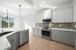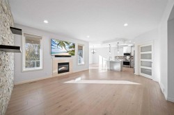 New Paint!! Experience modern luxury in this stunning home featuring 5 spacious bedrooms and 3.5 beautifully appointed bathrooms. The ensuite has 2 sinks and a separate shower. Entertain with ease in the expansive living areas, complete with a cozy fireplace, fully integrated sound system, and under slab heating for comfort year-round. Of course it also has central air conditioning for those hot summer days. The chef inspired kitchen boats a large island, perfect for gatherings, and flows seamlessly into the dining and living spaces as will as a covered upper deck just off the kitchen area. Step outside to your private backyard oasis, complete with a hot tub, fire pit, and terrace- ideal for relaxing and entertaining in any season. 2 washers and 2 dryers for your convenience. Also has underground sprinklers in the front and backyard. The home also features a modern triple car garage with a floor drain and remote access. Thoughtful details include window coverings throughout and elegant finishes that combine style and functionality. Every corner of this home has been designed with comfort, convenience, and modern living in mind.