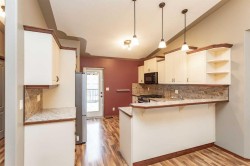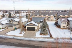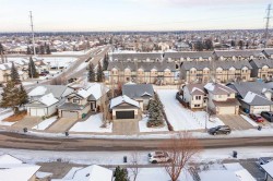 Immaculate bi-level home fully finished from top to bottom with every space maximized for function. Located in a family friendly community with quick access to schools, parks plus shopping amenities. Professionally landscaped not only for lovely curb appeal but also offers a low maintenance lifestyle. The welcoming front entrance offers plenty of space to greet guests in style but also provides room for boots,bags and everyday flow. Enjoy the sun filled living space enhanced by vaulted ceilings for a spacious, uplifting feel. Timeless antique white cabinets elevate the kitchen, which opens beautifully to the dining area for an elegant, cohesive space. Kitchen is also complimented with a raised eating bar, wrap around counter space, pantry closet plus an upgraded insert gas stove. Generous main bathroom offers a large full length vanity with storage cupboards and drawers. Primary bedroom is roomy enough for a King size bed, dual closets for all your attire plus your own private three piece en suite for added comfort. Additional main floor bedroom is great for guest or even a nice studio/office space for yourself. Head down to the finished basement and find a large yet cozy family room where everyone can relax, play or spend quality time together. Two additional bedrooms ideal for extended family over the holidays or for the independent teens looking for their own sanctuary. Basement bath is also enhanced with a roomy walk in shower great for limited mobility plus large vanity as well. Enjoy the comforts of the under floor heat during these colder months ahead but also relish in the summer with the AC once the warm weather hits. Other upgrades were newer shingles approx 7-8 years ago, updated furnace, both Hot Water tanks have been replaced plus a Ecowater conditioning system installed. The attached garage with in floor heat is especially appreciated this time of year with evaporation pit for snow melt. A nice size back patio offers a gas line for the bbq plus additional closed storage underneath excellent for the patio furniture. The well placed columnar trees give added privacy to the back yard plus the additional features of a small RV parking area, dog run plus the extra garden storage shed add to the value experience of the yard. Make this house your home for the holidays.