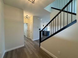 THIS NEW BUILD TWO STOREY WITH UPPER LEVEL BONUS ROOM HAS SOME EXCITING UPGRADES! A stunning home with EXCEPTIONAL CURB APPEAL situated in the much sought after SUBDIVISION OF EVERGREEN designed for peace and tranquility with a water feature and an extensive green space for trails, biking and walking! Evergreen has that country feel tucked away from hustle and bustle and surrounded by fields with just a five minute drive north to the Riverbend Golf and Recreation Center and the Red Deer River walking trails. Welcome to this GORGEOUS HOME with 9FT CEILINGS on the main level flowing through to the EAST FACING LIVING/DINING/KITCHEN with an ATTRACTIVE LIVING ROOM FIREPLACE WITH A FLOOR TO CEILING FULL STONE SURROUND! The DREAM KITCHEN features UPGRADED WHITE CABINETRY ELEVATED TO CEILING HEIGHT, Quartz Countertops, Center Island with Extended Breakfast Bar, Walk-In-Pantry and All Stainless Steel Appliances (Fridge with Water, Wall Mounted Range Hood and an Upgraded 'In-Cabinet' Installed Microwave are included)! An adjoining good sized DINING AREA with a garden door leads out to the EAST FACING DECK with metal railings! A SEPARATE LAUNDRY ROOM and a 2 PCE BATH complete the main level! Upstairs we have the BONUS ROOM, the PRIMARY BEDROOM with a MAGNIFICENT OVERSIZED WALK IN CLOSET and a 3 PCE ENSUITE with dual sinks, quartz countertops, tile floor and 5 ft shower with full tile surround. Next to that the spacious two secondary bedrooms and the main 4 pce bath with quartz countertop and tile floor. This gorgeous home has an UPGRADED GARAGE DOOR and the INSIDE OF THE GARAGE IS COMPLETELY FINISHED TO PAINT GRADE! The basement is open for development with ROUGHED IN INFLOOR HEAT! The Annual HOA Fee for 2025 is at $130 + gst $136.50).... TAXES NOT YET ASSESSED....