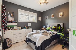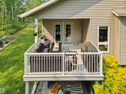 This custom home is nestled in a gated golf course community, backing onto trees and beautifully landscaped. The yard features a lovely garden, space for RV parking, and a deck off the kitchen/dining area with a gas BBQ hookup—perfect for entertaining or relaxing outdoors. Inside, 10-ft ceilings and open floorplan make the home spacious and inviting. The kitchen offers beautiful cabinetry, granite countertops, a walk-in pantry and large island. The living room is bright and welcoming featuring a gas fireplace that adds warmth and charm. The main-floor primary suite includes double sinks, a 5-ft glass shower, and walk-in closet. Upstairs you’ll find two generously sized bedrooms and a full bath. The basement is drywalled with a roughed-in bathroom, ready for your personal touch. Extras include a 23'x24' heated garage, shed with wood stove, on-demand hot water, high-efficiency furnace, and rough-ins for in-floor heat and central vac. A serene property on a 0.464-acre lot!