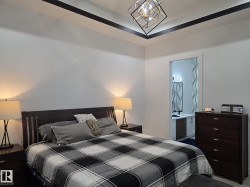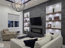 Welcome to this exceptional 5 bed, 4 bath bungalow in the desired River Ravine Estates, crafted for those who appreciate luxury comfort. Set on .27-acres w/ RV parking, this home offers over 1,800 sq ft on the main level, 11 ft ceilings & expansive windows create an inviting, light-filled atmosphere throughout the open living space. The striking kitchen boasts a large island, quartz surfaces & stainless steel appliances. A beautiful floor-to-ceiling stone fireplace anchors the living room. Main floor offers 3 baths, two of which are ensuites and main floor laundry. The finished basement adds the two additional bedrooms, a 3-piece bath (awaiting your completion), & an impressive family area w/ a wet bar. High-efficiency furnace, central AC, HRV system and triple-pane windows. Outdoors, enjoy a 24x10 vinyl deck with aluminum railing, professionally designed landscaping and concrete patios. A spacious triple garage completes this stunning property!