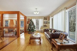 Set in a PRIME LOCATION just minutes from Calgary and close to excellent schools, this exceptional family home offers space, privacy, and a lifestyle that’s increasingly hard to find. With over 4,550 square feet of fully developed living space, this property is designed to accommodate large or growing families, multi-generational living, and memorable entertaining. The home features five generously sized bedrooms, including a huge, primary suite complete with patio doors leading to a large west-facing balcony—the perfect spot to unwind and enjoy evening sunsets. Two fireplaces—one wood-burning and one natural gas—add warmth and character throughout the home. At the heart of the home is a magnificent SUNKEN GREAT ROOM spanning approximately 525 square feet, luxuriously carpeted and rich wood accents. This impressive space with its COZY FIREPLACE is ideal for hosting family gatherings, celebrations, or simply enjoying everyday living on a grand scale. The access to the back patio makes this space perfect for entertaining inside and out. The updated kitchen features granite countertops, a BEAUTIFUL CERAMIC-TILED floor, and updated appliances - perfect for large gatherings or simple family meals. Hardwood, ceramic tile, and carpeted flooring throughout provide both durability and comfort. The fully developed basement includes a summer kitchen, offering excellent flexibility for extended family, guests, or entertaining and a huge rec room for games, workouts or an extra bedroom. Outside, the acreage setting truly sets this property apart. A large, level grassed area offers space for a private soccer pitch or multi-sport play, while the wooded eastern portion of the property adds privacy and a natural buffer. Wildlife—including deer, moose, and a wide variety of birds—are frequent visitors, creating a peaceful, nature-rich environment. Additional highlights include an under-drive double garage, paved road access to the driveway, and a quiet, private setting that still offers easy access to Calgary and nearby amenities. An outstanding opportunity to enjoy acreage living without sacrificing space, comfort, or convenience—this is a home built for family, entertaining, and lasting memories.