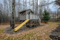 Looking for your own piece of paradise? This beautiful acreage could be the answer to your dreams! Located just 20 km (13 mins) from Grande Prairie with an easy drive on mostly double highway, this fantastic 1,244 sq.ft. 5-bedroom, 2.5-bath bungalow sits on 3 acres surrounded by mature trees in Hilltop Estates. The fully treed lot offers privacy and tranquility, complete with trails throughout the wooded area for you to explore. Enjoy outdoor living with a large back deck, dog run, chicken coop/raised garden area, outdoor firepit, two sheds, and a children’s playhouse — plus a double car garage. This property perfectly blends country charm, peaceful living, and modern convenience — the ideal place to call home.