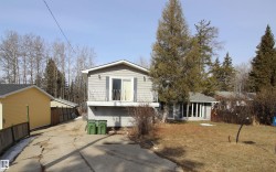 Enjoy Year-Round Comfort Just Steps from Lac Ste. Anne Lake! This charming 3-bedroom, 2 bath home offers the perfect blend of convenience & potential. With a spacious cement driveway and patio, you’ll have plenty of room to relax. Enter through one of two doors—one leads into a versatile Utility & Bonus Room, ideal for storage or transforming into a cozy den. The other door opens to a large Boot/Sun Room, which flows into the L-shaped kitchen with views of the backyard. Down the hallway, you’ll find the main floor laundry room, a well-appointed 3pc bathroom, & a bright dining room filled with natural light from the bow window. Two generously-sized bedrooms are also located on the main floor. Upstairs, the spacious living room provides a great space for unwinding, while the Primary Bedroom offers a private retreat, complete with a walk-in closet & a 3pc ensuite. With central air conditioning to keep you cool on those hot summer days, this home is the perfect place to enjoy all year long!