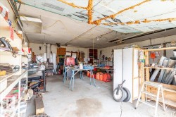 Fully Finished Shop with 1937 sq/ft of Living Space Situated on 80 Acres! Inside the shop the main floor of the living space hosts the kitchen, spacious living room, 2 piece bathroom, and access to the "work side". The beautiful Kitchen has granite counter tops, an island, and a corner pantry. The Upper level of the living space has 3 bedrooms including the primary with a walk-in closet, and 3 piece ensuite bathroom. A 4 piece bathroom, laundry, and another walk-in closet conclude the living space of the shop. The work side of the shop has two overhead doors, LED lights, 220 power, and more. The Shop has in-floor heat, fan coil forced air, and air-conditioning on the living side. There is also an older home on the property, a detached garage, metal quonset, butcher shed, and other buildings. The two homes each have their own water wells and septic systems. This Property is also fenced for animals with a shelter and a dugout for water.