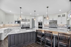 THIS COULD BE YOUR NEXT HOME! And what an EXCEPTIONAL home this is!! This property has 2.94 acres and is located just north of Didsbury so it has GOOD PROXIMITY TO TOWN. NO EXPENSE WAS SPARED while building this since the owners meant to stay here long term-MANY HIGH END UPGRADES. Let's start in the house; you will immediately realize how special it is when you step inside. You will notice the SOARING VAULTED CEILINGS, open floor plan and HUGE WINDOWS allowing in lots of natural light and giving you INCREDIBLE, PEACEFUL VIEWS. The kitchen is a CHEFS DREAM with a huge dual surface island (quartz/butcher block) w eating bar, gas stove, large pantry, copious amounts of cabinets, plenty of workspace and a breakfast nook with access out to the covered, glass enclosed, concrete deck. This kitchen has enough space for the whole family to be in and is a great area for entertaining. There is a formal dining room with custom built in cabinets and the living room has a gas fireplace. And remember those views!! There is an expansive primary bedroom with access out to that deck, gas fireplace and it has an impressively large walk in closet. The ensuite has a large walk in shower, separate tub and double vanity with lots of drawers/storage. There is also in-floor AND electric heat, making it a comfortably luxurious place to get ready for the day. There is a secondary bedroom, a large office with custom built ins (which could serve as a third bedroom if need be), main floor laundry with sink/lots of storage cabinets, a boot/mud room with bench seating, main bathroom and an inviting entryway. Head down the spiral staircase into the fully developed basement and you will find MORE EXCEPTIONAL SPACE for the whole family. There is a huge family room with gas fireplace, a gym with mirror wall, a large modified jack & jill bathroom with water closet and shower room, 2 OF THE LARGEST BEDROOMS YOU HAVE EVER SEEN, a large secured hobby room and a massive utility/mechanical room big enough to hold all of your food prep items. The basement has a walk out to the covered patio (w/rough in for future hot tub) and there is even consideration for a future elevator. This home has TRIPLE GLAZE TILT n TURN windows making them a breeze to clean and maintain. There is CENTRAL AIR, in floor heat on BOTH levels and there are MULTIPLE WAYS TO HEAT THIS HOME (gas, wood boiler, solar). There is EXTRA R VALUE and WALL ARE EXTRA THICK making this home very tight and VERY COMFORTABLE IN EXTREME TEMPERATURES. Head out to THE BIGGEST ATTACHED GARAGE YOU HAVE EVER SEEN and you will notice that you could easily park your 5th wheel inside (14' door) with all of your other vehicles. There is also IN FLOOR HEAT IN THE GARAGE and this is where the wood boiler is. You will have plenty of storage and workspace here to appeal to those who think a garage is more important than the house! There is a solar system that can stay or go. THIS HOME WILL TAKE YOUR BREATHE AWAY-CALL TODAY TO VIEW!!