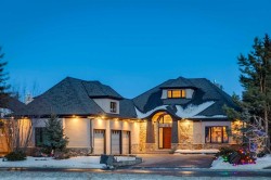 Discover one of the most iconic estate homes offered in prestigious Elbow Valley Estates—an extraordinary custom residence that combines European grandeur, architectural artistry, and exceptional craftsmanship. Perfectly positioned on a private lakefront lot, this executive walkout bungalow offers over 8000 square feet of exquisitely developed living space, designed with precision over years of thoughtful planning and executed by master artisans. From the moment you enter the grand foyer with its coffered and barrel-vaulted ceilings, it’s clear this is a home unlike any other. The main level features a sun-drenched great room with a double-sided fireplace and expansive windows framing unobstructed lake views. The heart of the home is the richly appointed ‘French Manor’ inspired kitchen—equipped for grand-scale entertaining with granite countertops, top-tier appliances including a Sub-Zero refrigerator, gas range with pot filler, two dishwashers, and a walk-in pantry. A cozy breakfast nook with fireplace and access to the expansive upper deck provides the perfect spot for morning coffee overlooking the water (with handi-cap access). An elegant formal dining room with custom glass cabinetry, a fully paneled library/office with fireplace, and a large laundry/sewing/hobby room complete the main level. A reverse osmosis water system is conveniently located in the craft room. The luxurious primary suite is a private sanctuary, featuring a vaulted sleeping area, two-way fireplace, and a spa-inspired circular ensuite with bubbling soaker tub, walk-in shower, dual vanities, and a generous dressing room with built-ins. The suite also offers deck access to enjoy tranquil lake views. A versatile loft functions as a full office or creative workspace, complete with multiple workstations—ideal for today's remote professional or growing family. The lower level is designed for recreation and relaxation, boasting an authentic English-style pub with a full wet bar, games room, media/theatre room, and three additional spacious bedrooms—each with their own private ensuite and walk-in closet. Three solariums enhance the lower level, offering a fully enclosed hot tub retreat, home gym, and peaceful sitting room, all flooded with natural light. This remarkable residence is equipped with countless thoughtful upgrades, including two newer air conditioning units, newer hot water tank and sump pump, new sinks and hardware in the craft room and kitchen . The property also features a recently serviced irrigation system. Designed for effortless living, this home includes hydronic in-floor heating on all levels, a dramatic central staircase, private elevator, and a heated triple garage. Every detail reflects unparalleled quality and meticulous attention throughout. Outdoor living is equally exceptional, with sweeping views of the lake and beautifully landscaped grounds—an entertainer’s dream and a private oasis.