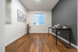 This home showcases on-trend, designer-curated interior selections tailored for a home that feels personalized to you. Energy efficient and smart home features. A beautifully upgraded home backing onto tranquil greenspace. This stunning property features an executive kitchen with built-in stainless steel appliances, gas cooktop, fridge with water and ice, a waterfall island with waste-bin pullout and a pantry with MDF shelving. Enjoy 10' ceilings in main living areas, LVP flooring, a main floor flex room, and an electric fireplace with mantle. The primary bedroom offers wall detail, MDF shelving in the WIC, and a 5-piece ensuite with tiled walk-in shower, tile flooring, barn door, and a bank of drawers. With additional windows, black hardware, a developed stairwell, 9' basement ceilings, and a rear deck with BBQ gasline rough-in, this home blends luxury and comfort. This energy-efficient home is Built Green certified and includes triple-pane windows, a high-efficiency furnace, and a solar chase for a solar-ready setup. With blower door testing that may be eligible for up to 25% mortgage insurance savings, plus an electric car charger rough-in, it’s designed for sustainable, future-forward living. Featuring smart home technology, this home includes a programmable thermostat, ring camera doorbell, smart front door lock, smart and motion-activated switches—all seamlessly controlled via an Amazon Alexa touchscreen hub. Photos are a representative.
