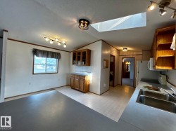 Walking distance to the lake! Move in ready and with so much to offer! This 2000 built modular home is situated on a large completely fenced lot and has a great double detached garage, two tiered deck and beautiful trees throughout! Starting at one end, you have a large primary bedroom, with a walk in closet and 4 pc ensuite featuring a window for natural light. Heading the other way you have a pantry, utility/laundry room and your kitchen/dining room with ample cupboard space and a skylight enhancing that open feel! Large windows in both the dining room and living room are a great touch. Further down you have a wide entrance, another 4 pc main bathroom and two more bedrooms. Everything you need is here it would be hard to run out of space. This home is definitely worth a look, there's nothing to do but unpack!