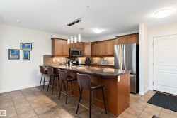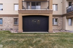 IMMACULATE 2 bedroom + 2 bathroom situated halfway between the north and south entrances which offers VERY QUIET LIVING free of elevator/lobby noise. Along with quick/easy access to the parkade or front entrances. THE OWNERS LIKE: their UNDERGROUND PARKING STALL, not having to wait for elevators, GRANITE COUNTERTOPS, the WEST FACING PATIO w/screens offering privacy that regulate wind and sun exposure. ALSO: Emerald Hills shopping center, easy access to bike / walking trails, cross country skiing, birdwatching, Edmonton, Elk Island National Park, Cooking Lake and Strathcona Wilderness Center. Total upgrades May, 2024-October, 2025 = $24,853. NEW GE appliances July/Aug 2025 ($8700), CUSTOM MADE patio enclosure installed Dec, 2024 ($6700), New luxury vinyl plank flooring (June, 2025 - $6653.00), PROFESSIONAL PAINTING of suite May 2024 ($2000), Natural stone on fireplace Oct 2025($800). Building features: GUEST SUITES, GAMES room, THEATRE room, FITNESS room, SAUNA + STEAM rooms, LIBRARIES, and CAR WASH.