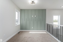 Experience modern living within this brand new 1587 sq ft duplex offering the perfect balance of style and comfort. The main floor boasts an open concept design with oversized windows that fill the home with natural light, a welcoming living room with fireplace, a sleek kitchen with abundant counter space, and a convenient 2pc bathroom. Upstairs you will find a versatile bonus room along with three spacious bedrooms including a primary retreat complete with a walk in closet and a 5pc ensuite, plus another full 4pc bathroom. The unfinished basement provides endless potential for future development while the double attached garage ensures convenience and storage. Step out onto your private deck and enjoy warm evenings in a vibrant community close to parks, trails, schools, and shopping. With brand new appliances, a separate entrance, and the pride of being the first to call it home, this property is ready to welcome you into the lifestyle you have been waiting for. Some photos are virtually staged.