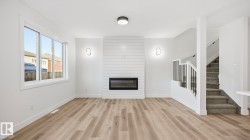 This stunning duplex blends modern design with everyday practicality. The open-concept main floor features a chef-inspired kitchen with full-height cabinetry and quartz countertops, flowing seamlessly into a bright great room complete with a shiplap feature wall and cozy electric fireplace. Upstairs, the primary suite offers a peaceful retreat with a tray ceiling and a spa-like 4-piece ensuite. Two additional bedrooms, a convenient upstairs laundry room, and a versatile loft area complete the upper level. Thoughtful upgrades include 9’ ceilings on both the main and basement levels, custom MDF shelving throughout, a garage floor drain, gas lines for a BBQ, a tankless gas water heater, high-efficiency furnace, and an HRV system. The side entrance to the basement provides the perfect opportunity for future development. Appliances and blinds are included—move in before the holidays!