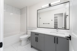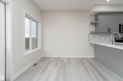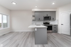 Prepare to be impressed by this brand new 1600 sq ft duplex, showcasing a modern, clean look throughout. The main floor offers a bright and spacious open layout with a warm fireplace in the living room. The modern kitchen includes stainless steel appliances and plenty of counter space, flowing into a large dining area with easy access to the deck. Upstairs, a spacious bonus room separates the three well sized bedrooms, including a beautiful primary suite with a walk in closet and a 4 piece ensuite. Another 4 piece bathroom adds everyday convenience. The full unfinished basement and double attached garage offer excellent storage, future development potential, and the opportunity to create a legal basement suite with its separate entrance. Outside, enjoy a large deck and a generous backyard perfect for entertaining, relaxing, or enjoying warm summer days. With brand new appliances and the excitement of being the first to live here, this home is truly an exceptional find. Some photos are virtually staged.