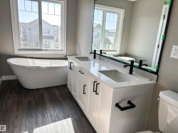 IMMEDIATE POSSESSION 5 Things to Love About This Home: 1) Spacious Main Floor – Experience open-concept living with a bright, welcoming layout designed for connection and comfort — perfect for family gatherings and entertaining. 2) Stylish Kitchen – Cook with confidence in a beautifully designed kitchen featuring a corner pantry, large island with breakfast bar, and plenty of storage for all your essentials. 3) Relaxing Retreat – The primary suite is your personal escape, complete with a walk-in closet and a spa-inspired 5pc ensuite offering dual sinks, a soaker tub, and a stand-up shower. 4) Smart Design – The upper level blends style and practicality with a versatile bonus room, convenient laundry area, and two additional bedrooms for family or guests. 5) Move-In Ready – Step into this new home without delay! With immediate possession available, everything is ready for you to unpack, relax, and start making memories from day one. *Photos are representative.*