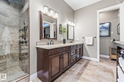 Experience unmatched luxury in this executive custom-built walkout bungalow in Kingswood. With over 4,440 sq ft of living space, this home offers 10 ft ceilings, travertine tile, scraped hardwood, coffered detailing and a full stone fireplace that anchors the main living area. The chef’s kitchen features JennAir appliances, granite counters, a huge island, custom cabinetry, walk-through pantry that leads to an oversized mudroom with custom lockers and den on the main. The private primary suite includes a large walk-in closet and a spa-inspired ensuite with heated floors, dual sinks, jetted tub and a walk-in double steam shower. The walkout basement is built for entertaining with heated floors, wet bar, 4 large bedrooms, two full baths, a spacious laundry room and a temperature-controlled walk-in wine cellar. Outside, enjoy a low maintenance landscaped yard with privacy trees, stone patio, composite deck. A heated oversized garage with a lift accommodates 3 indoor stalls. An exceptional Kingswood home.