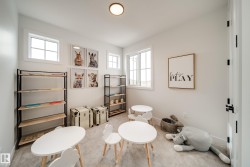 Welcome to The Vantablack by AWARD WINNING builder Justin Gray Homes, set on a 30’ pocket cul-de-sac lot in Cherot. An UPGRADED masterpiece w/over 2500 sqft blends luxury & functionality in a Modern Farmhouse colour palette by CM Interiors, showcasing sleek black cabinetry & timeless Carrera QUARTZ counters. An open to below great rm fills the home w/natural light, complemented by 9’ ceilings, 8’ doors, HARDWOOD floors, & a cozy GAS fireplace. An oversized dbl garage leads to a mudrm w/custom MDF built-ins, connecting to a walkthru pantry w/JG's signature archways,to a chef inspired kitchen w/huge island, premium DOVETAIL cabinetry, & a full KitchenAid APPLIANCE PACKAGE INCLUDED. A bright den & 1/2 bath complete the main. Upstairs find 3 spacious bdrms, incl. a dreamy primary retreat w/VAULTED ceilings, panelled feat. wall, spa-inspired 5 pc ensuite & massive WIC w/DIRECT access to the laundry rm. Steps to parks, near future schools and rec center. *Photos of similar model-final layout/finishes may vary.