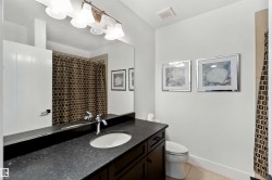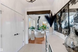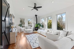 BACKING ONTO A TREED RAVINE & SIDING ONTO A PARK! Welcome to this stunning walkout bungalow in the sought-after community of Grandin, St. Albert. Perfectly situated, this home offers both tranquility & convenience with an additional park across the street. Featuring 4 spacious bedrooms & 2 full baths, including a 3pc primary ensuite with a walk-in closet, this home blends comfort & elegance. Inside, you’ll love the white walls, black doors & stunning hardwood floors that create a timeless modern look. The large kitchen, living room & dining area feature dark kitchen cabinets, massive windows, tile floors, a gas range, SS appliances, and an eating island, offering both style & functionality. The walkout lower level includes a generous recreation room, large laundry room & ample storage space. Complete with a double attached garage & an aggregate driveway, this luxury bungalow combines exceptional craftsmanship, thoughtful design & an unbeatable location with serene park views. All this home needs is YOU!