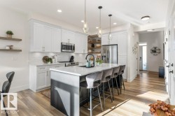 Welcome to this one of a kind property! This stunning home with over 4000 sqft of living space, offers TWO FULLY LEGAL SEPARATE SUITES each with MAIN FLOOR LIVING, meaning no one has to make their main living in a basement! Ideal for MULTIGENERATIONAL LIVING, AirBnB income, or ASSISTED FAMILY LIVING, this layout provides comfort & privacy all under one roof! A charming barn door currently separates the suites, but this space can easily be fully closed off for complete independence. Suite 1 features a bright and spacious main floor with a modern kitchen and inviting living area. Upstairs, you’ll find 3 generous bedrooms, a beautiful bonus room, a 5-piece main bathroom, and second-floor laundry. There is a designated basement area exclusively for this suite and offers an additional 4th bedroom and bath. Suite 2 is equally impressive, offering its own kitchen, living room on the main floor and a stunning primary retreat on the lower level with oversized windows heated ensuite flooring, and private laundry.