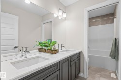 SHOWS 10/10 . 2379 SQ FT 4 BED 3 FULL BATH , 3 LIVING , 2 KITCHEN, SEPERATE SIDE ENTERANCE to 9 ft BASEMENT,FULLY LANDSCAPED . Welcome to Riverside community! This stunning 2-year-old home by Parkwood Master Builder offers 4 spacious bedrooms upstairs, 3 full baths, and 2 main floor living area perfect for family living and entertaining. The open-concept kitchen features modern finishes plus a spice kitchen for added convenience. A separate side entrance to 9 feet basement offers potential for a future suite. Enjoy an attached double garage with floor drain and a beautifully designed layout with room to grow. Located steps from Lois Hole Provincial Park, Red Willow Trails, and Big Lake, you'll love the natural beauty that surrounds you. Quick access to Ray Gibbon Dr. and Henday makes commuting a breeze. This move-in ready gem is waiting for its new owners—don’t miss it!