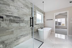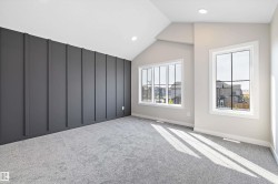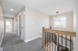 Welcome to this beautiful 2168 SQFT award winning OXFORD model by BLACKSTONE HOMES in Cherot, in St. Albert offering the exceptional architectural & magnificent PARIS Playground making this neighbourhood unique. This model won the best home with BILD awards 2024. As you enter, you will be impressed by the huge foyer, main floor den, dining room with bar, great room offering open to below 18 feet ceiling, linear fireplace with tiles/wood finish, chef's dream kitchen offering fridge/freezer combo, soft closing cabinets with huge island, built in appliances, much needed mudroom with built ins & bench. On 2nd floor you will find 3 bedrooms, 2 baths, laundry room, bonus room overlooking the great room. Master bedroom offers luxury ensuite with double sink, frameless upgraded shower, stand alone tub & huge WIC. Other features - 9' main/basement ceiling, Seprate entrance, upgrade quartz , MDF Shelving, black plumbing & fixtures, rear deck & New Home Warranty. Close to all amenities and Ray Gibbons Dr.