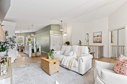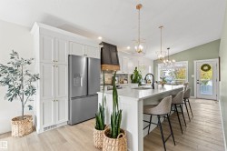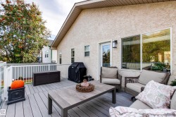 Beauty in Oakmont! Move-in ready updated bungalow on a fantastic street. This home boasts a open concept design with a spacious entry, vaulted ceiling and a cosy living room with a fireplace and large windows. The kitchen is a dream with new cabinets, a custom vent hood, large island, quartz countertops and new appliances. The dining area is conveniently located by the back door that leads to a maintenance free composite wood deck. There are two spacious bedrooms, a full main bathroom and a master bedroom with vaulted ceiling and full ensuite bathroom with double sinks. The refreshed basement is fully finished with an oversized family room that could serve many purposes. There is a bedroom, a third full bathroom and a laundry/storage room with tons of space. A bonus to this home is it's location backing a walk path. A great home for families and empty nesters alike!