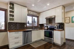 Welcome to this beautifully maintained bi-level home offering the perfect blend of comfort, style, and functionality. The main floor features three spacious bedrooms, newer flooring throughout, and a bright, updated kitchen and bathrooms. Convenient main floor laundry adds everyday ease. Downstairs, you’ll find a warm and inviting family room and a stunning updated 3-piece bathroom. The lower level also includes a generous undeveloped area—ideal for adding two additional bedrooms or customizing to suit your needs. Upgrades include a newer furnace (2015)and hot water tank (2021) and shingles (2012). Step outside to your own private retreat. The gorgeous, fully fenced yard is lined with mature trees and features a firepit area, gazebo, and large deck, perfect for relaxing or entertaining. There’s also RV parking, making this home as practical as it is beautiful. Located close to schools, the hospital, and excellent recreation facilities including an arena and pool, this property truly offers something for everyone. Don’t miss your chance to call this exceptional home your own!