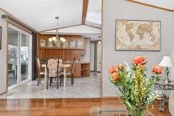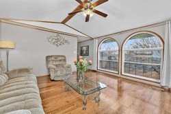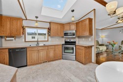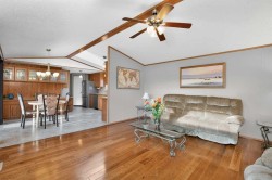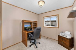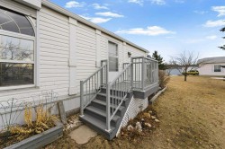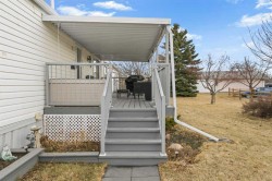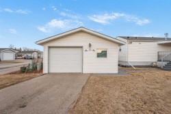 Located in Strathmore’s Ranch Estates, a premier adult living community. This well-maintained 3-bedroom, 2 full-bath home, including an ensuite walk-in shower and walk-in closet, offers comfortable, low-maintenance living, with landscaping included in the park fees. The open-concept design features a bright kitchen area with stainless steel appliances and a skylight. It flows seamlessly into an inviting, bright living space accented with hardwood flooring and large windows with shutters—step outside to a spacious west-facing covered deck with rolling shades and a gas BBQ—perfect for entertaining guests. Practical highlights include an insulated garage finished with drywall, an attached workshop, and a 6' x 8' garden shed for additional storage. Recent exterior updates include the roof and eavestroughs. Located near many amenities like shopping, restaurants, walking paths and Kinsmen Park—an excellent opportunity for buyers seeking convenience, comfort, and a community-focused lifestyle.